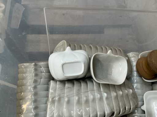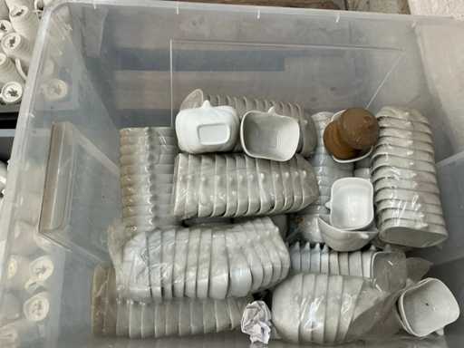 Zich bevindend in 3 diverse pvc boxen, partij koffiemokken COSY & TRENDY, en aperoschaaltjes