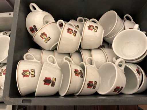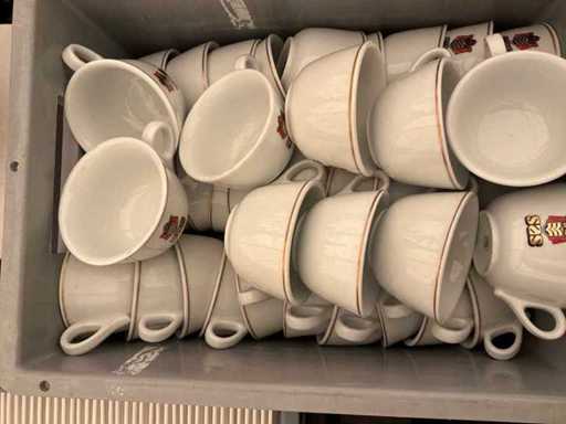 4x kist met koffietassen en ondertassen