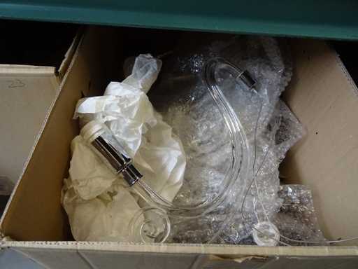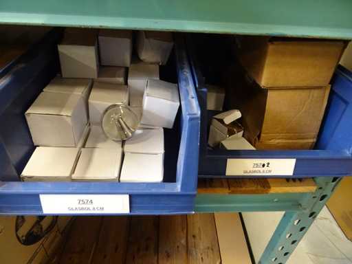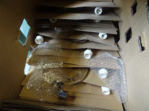 bestaande uit divers sierglas, sierarmen, kabels, fittingen, glazen bollen, montageplaatjes etc