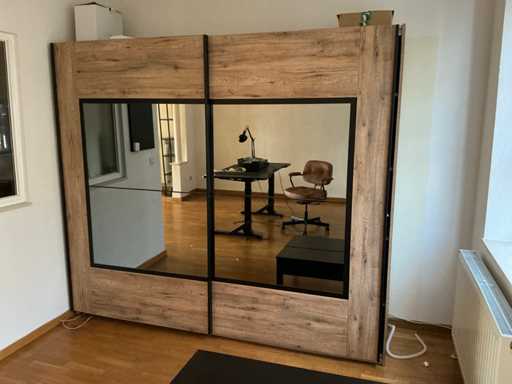 1 wandkast voorzien van 2 spiegelschuifdeuren 240 x 70 x 215cm,