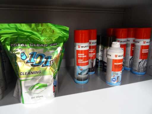 Partij onderhoudsmiddelen en spuitbussen, ca 190 verpakkingen