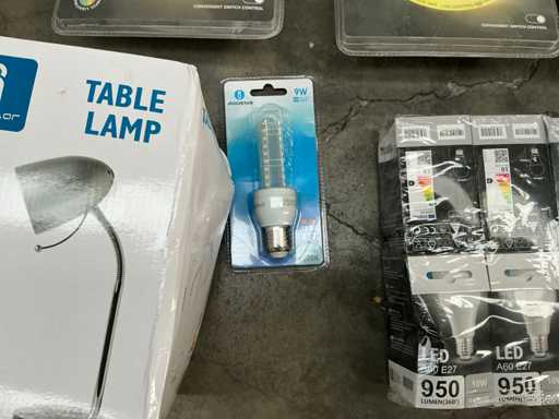Bestaande uit: led lampen, led strips, elektrische ventilatoren, verdeeldozen, tafellamp