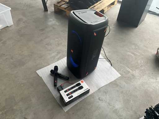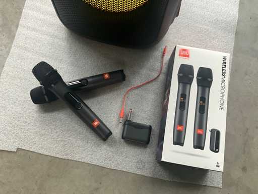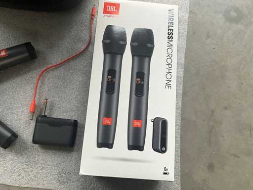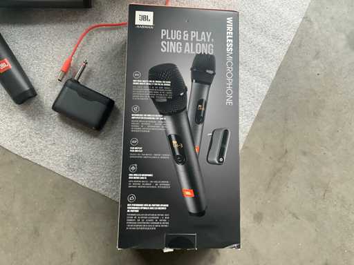 Box voorzien van stroomkabel en compleet met 2 draadloze microfoons HARMAN,