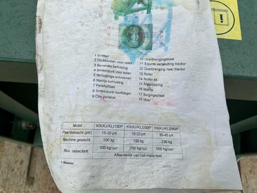 Voorzien van: matrijs diameter 200 mm, korrelgrootte 6 mm, incl. aftakas, 3 punts ophanging.