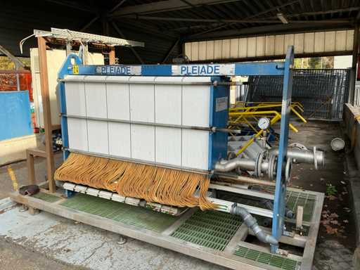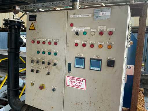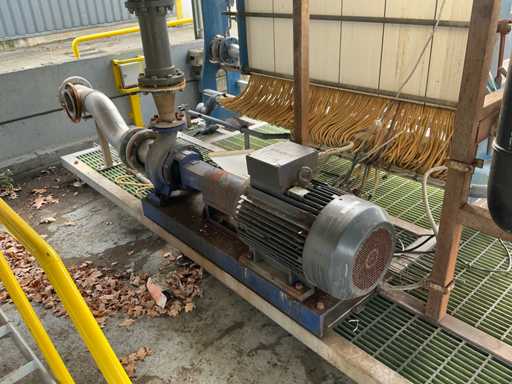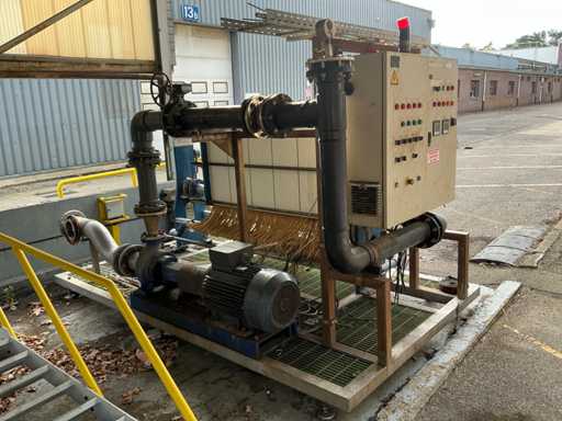 voorzien van zware KSB centrifugaalpomp met Siemens 30kW elektromotor, alles gemonteerd op RVS chassis, totaalafmetingen circa 345x196xH215cm