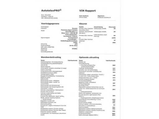 Tussen de afbeeldingen vindt u het VIN Rapport met Fabrieksinformatie en Opties en Accessoires.