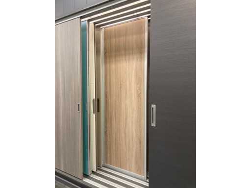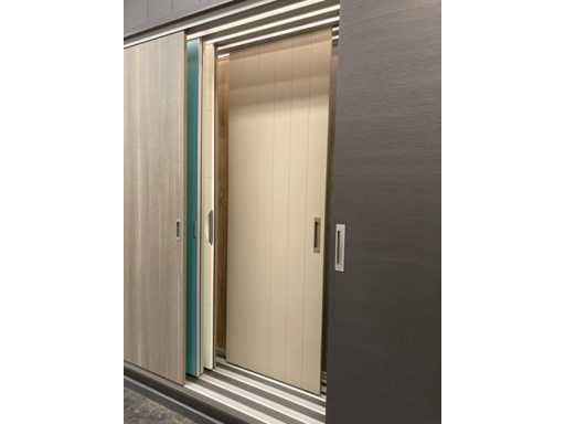 Inbouwkasten (dressings) en 23 schuifdeuren (zelf demonteren bij afhaling).
