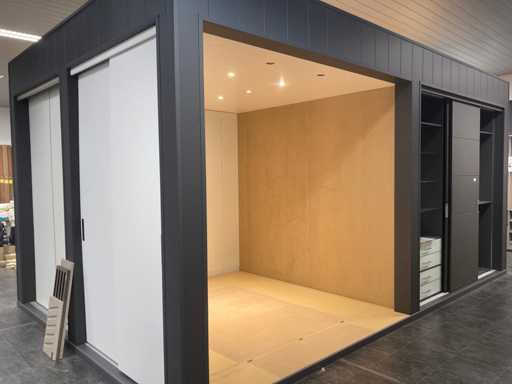 Presentatie blok met alle inhoud : (Blok is 300cm hoog, 373cm diep en 605cm breed)