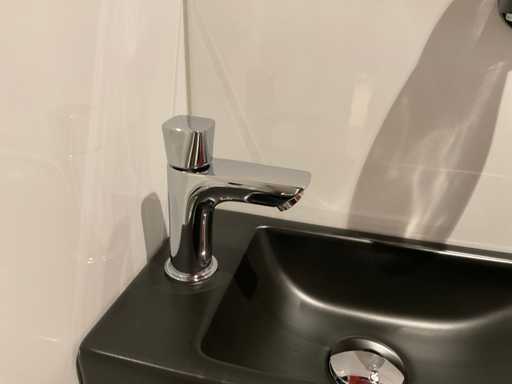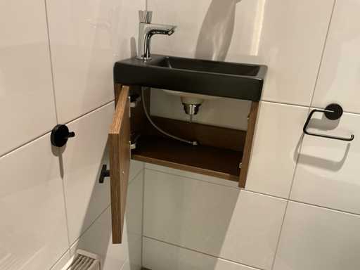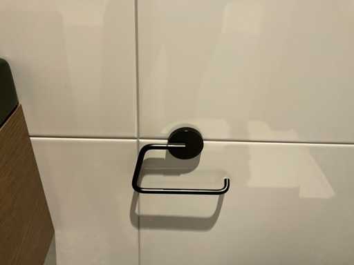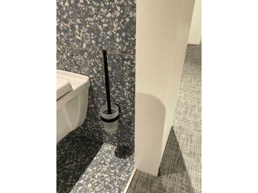 1 deurtje; fontein en HansGrohe fonteinkraan; toiletaccesoires w.o. zeepdispenser; closetrol-en borstelhouder; ophanghaak; LET OP: door koper zelf ter plaatse nog te demonteren; zonder de getoonde accessoires