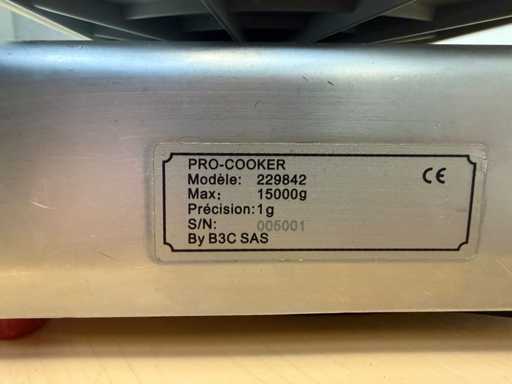 Professionele digitale keukenweegschaal van Pro.cooker, type S-GX, geschikt voor horeca- en grootkeukentoepassingen. Voorzien van een robuust RVS weegplateau en digitaal display met meerdere weegfuncties.