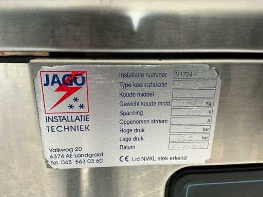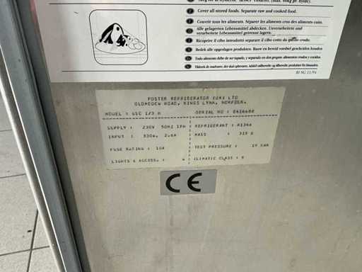 Bestaat uit: Foster Gastro Supra Koelwerkbank, model: GSC 1/3 H, serienummer: E416688, aansluitspanning: 230V / 50Hz / 1-fase, vermogen: 330 W, stroom: 2,6 A, koudemiddel: R134a (315 g), klimaatklasse: 5, temperatuurbereik: ca. +1°C tot +4°C, uitvoering: RVS, indeling: 3 deuren + 2 lades, koelunit: links geïntegreerd, bruto inhoud: ca. 435 liter, geschikt voor: GN 1/1 bakken, breedte: ca. 1800–2000 mm, diepte: ca. 700 mm, hoogte: ca. 850–900 mm, gewicht ca. 160Kg.