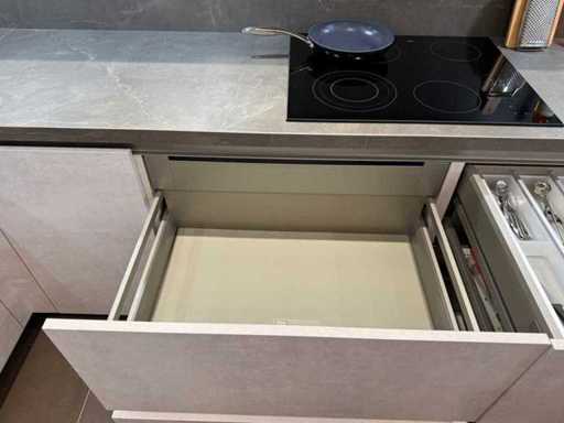 Afmetingen spoelbakgedeelte circa 217,6x60x92 cm; afmetingen kookplaatgedeelte circa 354x60x92 cm; reeds gedemonteerd en ingepakt op pallets. (afstapelen, omruilen of statiegeld per pallet); pallets zijn niet inbegrepen; statiegeld betalen bij afhalen, of pallets afstapelen; werkblad niet ingepakt op pallets (25-BUV-02492)