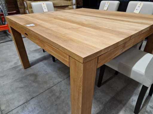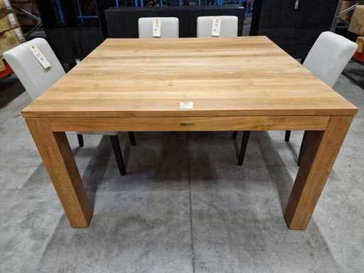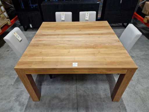 Quality Collection Teak Interieurtafel 140 x 140cm Naturel met Massieve Blokpoten - Nieuw Gemonteerd - Blad 3cm Dik