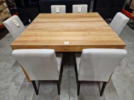 Quality Collection Teak Interieurtafel 140 x 140cm Naturel met Blokpoten