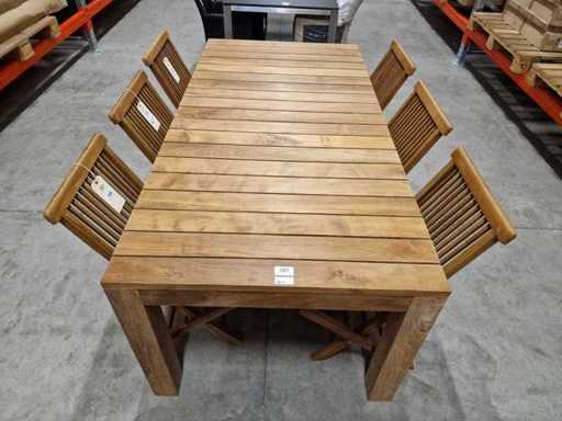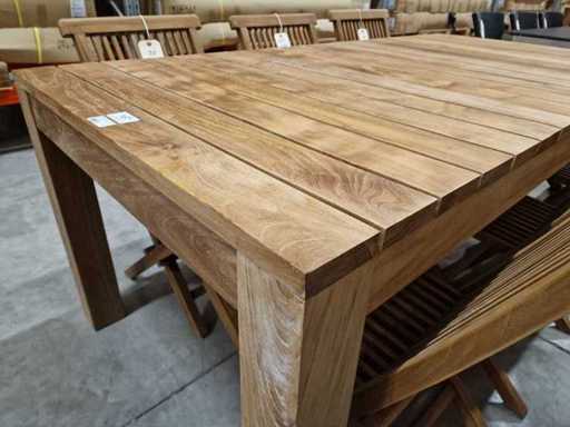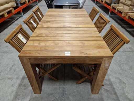 Quality Collection Tuintafel Ten 200 x 100cm Rechthoek Brede Latten - A-Kwaliteit teak met Blokpoten