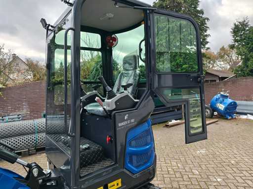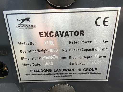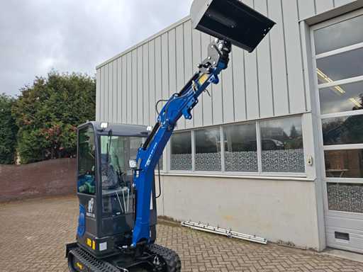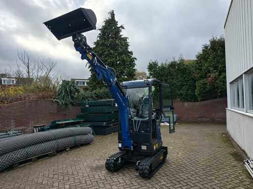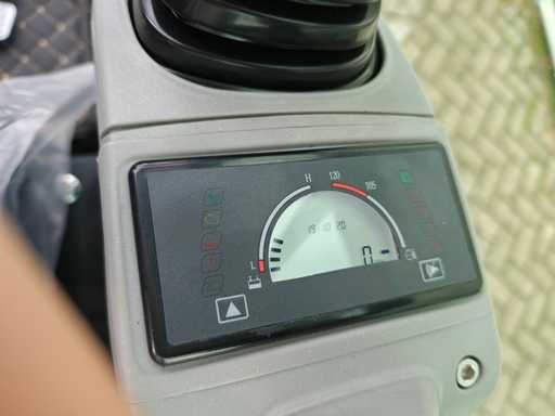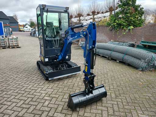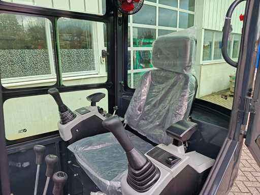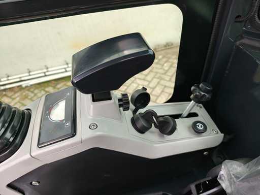 1800 kg minigraafmachine met 3 cilinder eur5 watergekoelde dieselmotor van 18.4KW / 25pk. uitgerust met servo bediening. Voorzien van cabine, zwenk giek met radius van 1500mm, dozerblad 1100mm, semi automatisch bakwisselsysteem, hydrauliekpomp 22L/min, opbreekkracht 10KN, Graafbak 80cm, tankinhoud 9.5 liter. ongebruikte machine