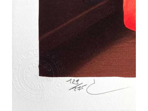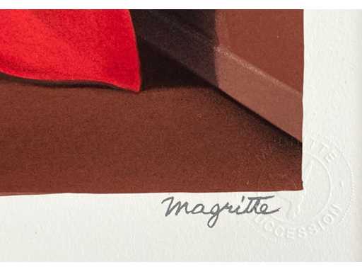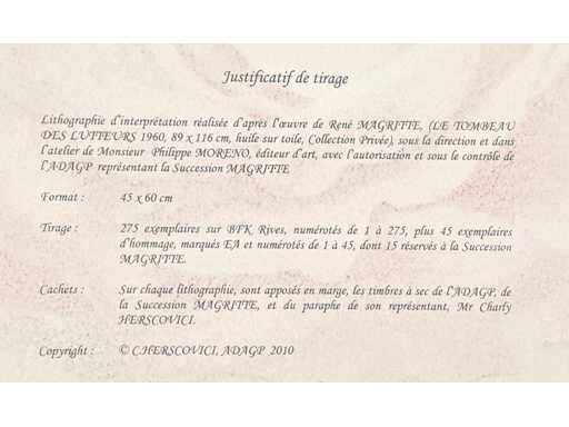 Lithografie naar Magritte - ‘ Le tombeau des lutteurs‘ (1960) - Voorzien van de droogsptempel van ADAGP en van de Succession Magritte alsook de paraf van Charly Herscovice - gemonteerd in passe-partout