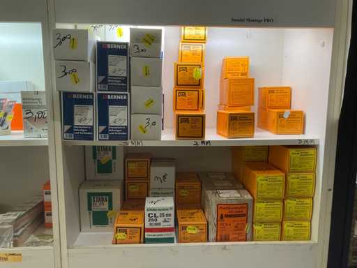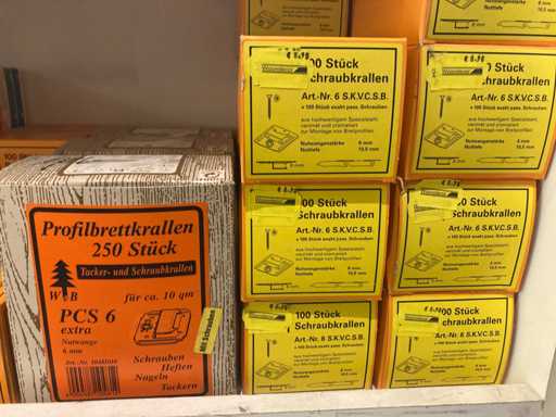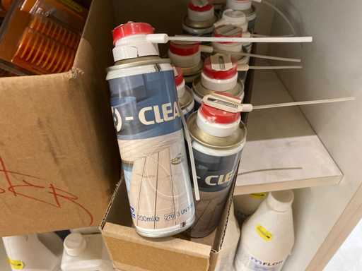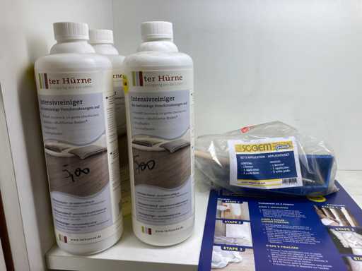 Restpartij olie, cleaners, laminaat kit, bevestigingsmateriaal enzovoorts