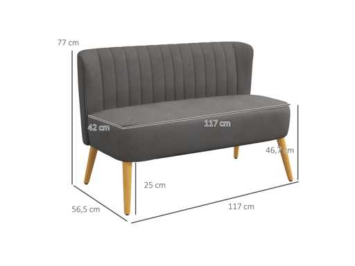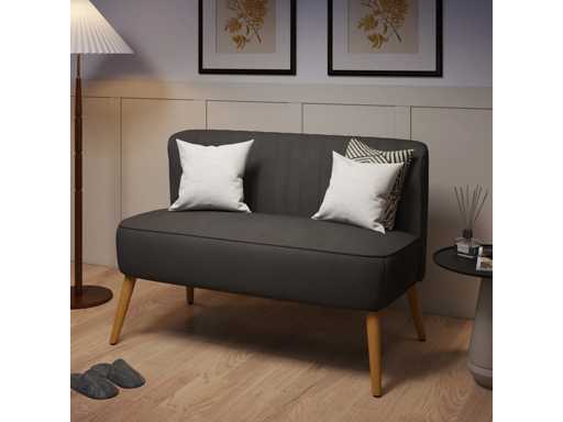 Retro 2-zits designer bank met houten poten - Donkergrijs