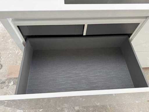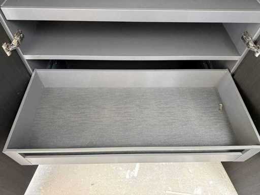 Conditie: gebruikt; afmetingen kastenwand 2x circa 119,5x60x224,5 cm; reeds gedemonteerd en ingepakt op pallets. (afstapelen, omruilen of statiegeld per pallet); pallets zijn niet inbegrepen; statiegeld betalen bij afhalen, of pallets afstapelen; werkblad niet ingepakt op pallets (26-2DE-03451)