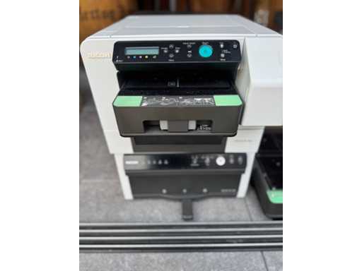 Bestaande uit: Ricoh RI 100 Direct-to-Garment (DTG) printer inclusief Ricoh RI 100h Press & Fix oven.