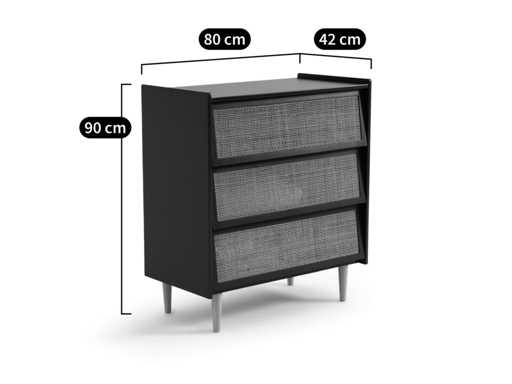 • 3 lades met rotan rieten front