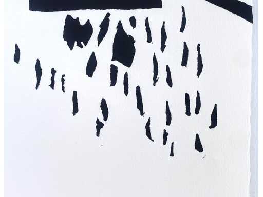 Originele houtsnede op handgeschept papier - uit "Vlaamse grafici '50-'90" - niet getekend en niet genummerd - bijgevoegd: het origineel colofon van de uitgave dat gesigneerd werd door alle deelnemende kunstenaars waaronder de handtekening van Roger Raveel