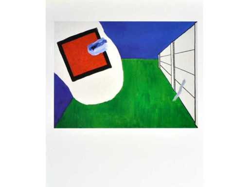 Uitgebracht op 500 exemplaren ter gelegenheid van de tentoonstelling "De Wereld van Roger Raveel" in de lokettenzaal van het Vlaams Parlement te Brussel – ingelijst met passe-partout (30x40 cm)