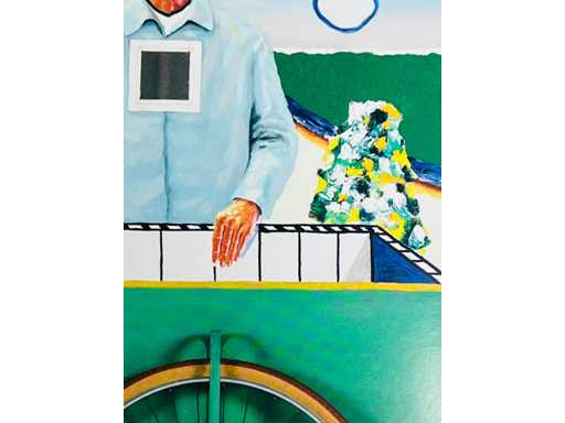 offset uitgebracht op slechts 500 exemplaren ter gelegenheid van de tentoonstelling "De Wereld van Roger Raveel" in de lokettenzaal van het Vlaams Parlement te Brussel - ingelijst met passe-partout