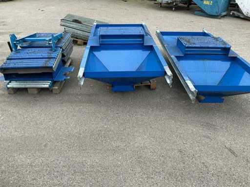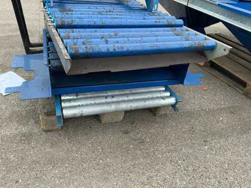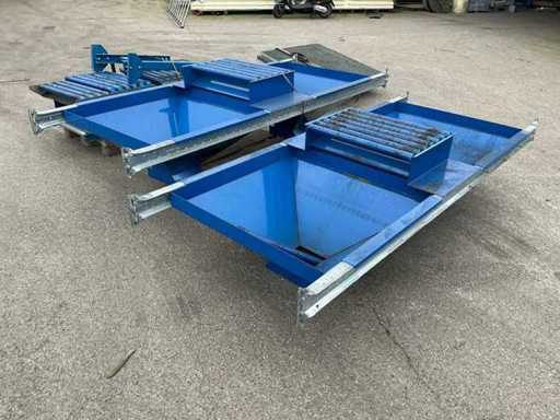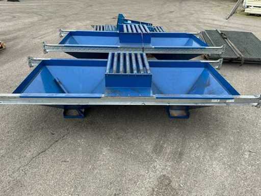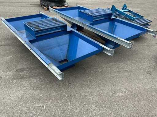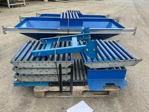 Voorzoen van: 2x dubbele trechterbakken met rolers + diverse losse rollers