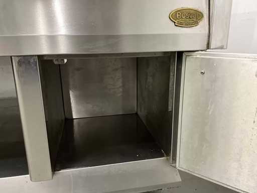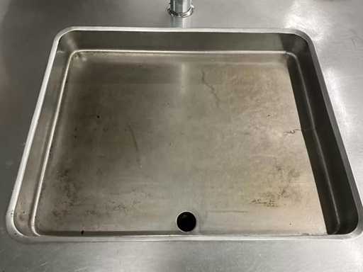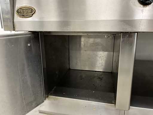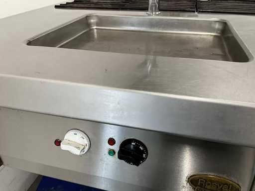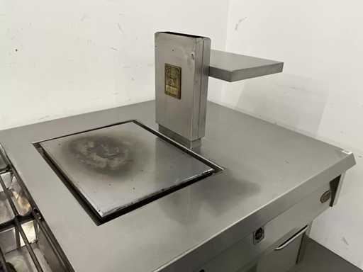 V.v. 9-Pits gasfornuis, bakplaat, geïntegreerde braadpan, mengkraan en etagère.