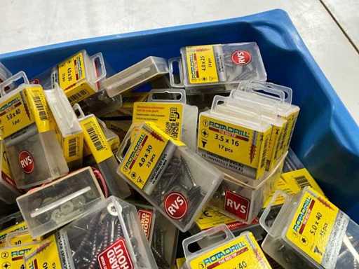 Rotadrill Assorti diverse schroeven RVS, verzinkt en messing (100x)