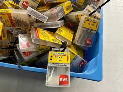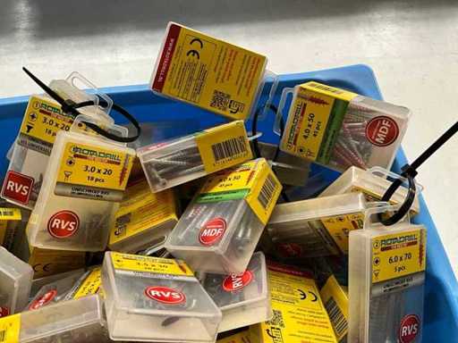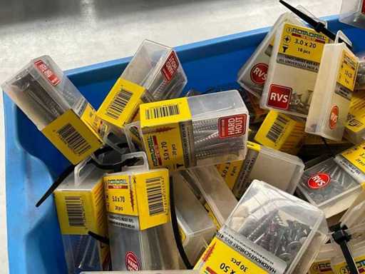 Rotadrill Assorti diverse schroeven RVS, verzinkt en messing (100x)