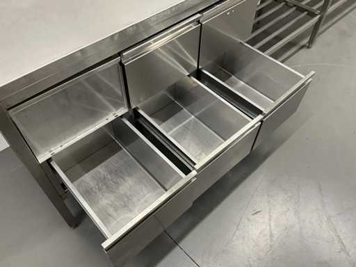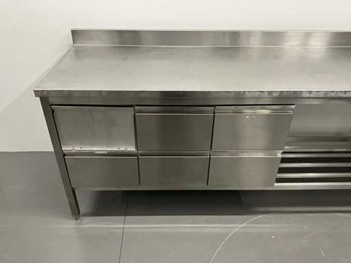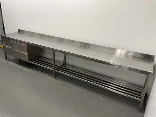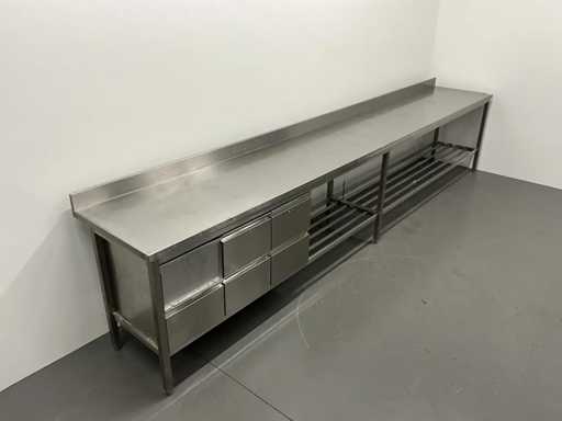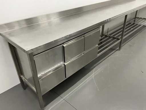 RVS werktafel met spatrand en lades (450 cm)