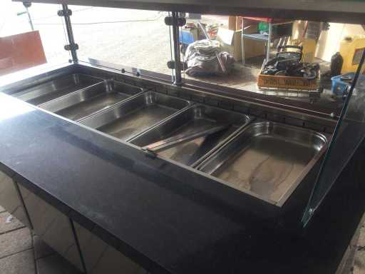 Voor 5 bakken GN1/1; met 3 deuren onderkoeling; glazen constructie top;