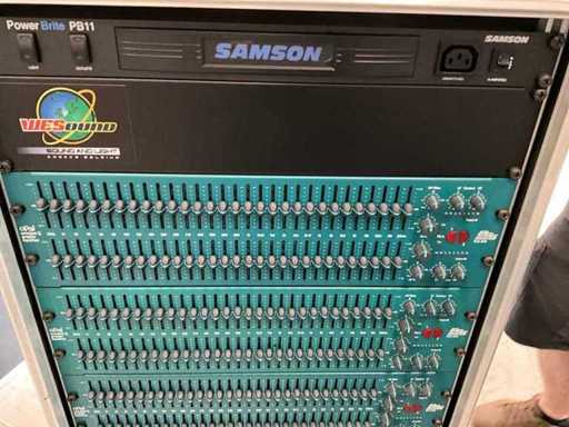Bestaand uit 1x power bright Samson, +5x BSS ICS 966, in stolp flightcase