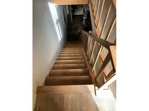 Op 2e verdiep, door koper te demonteren/verplaatsen van omgeving via 2x trap met breedte 77cm.