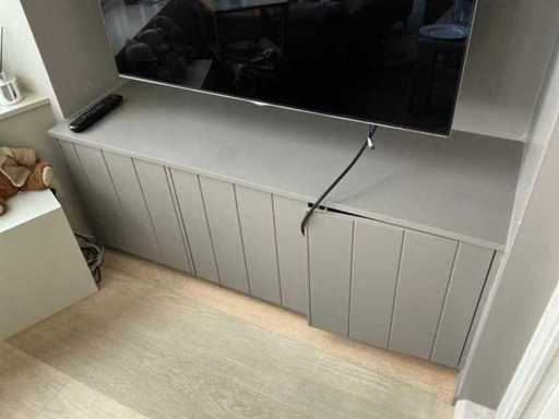 Compleet met 2x opbergkast, door koper te demonteren, met afmetingen ca. 140 x 46 x 54cm. Beiden zonder inhoud.
