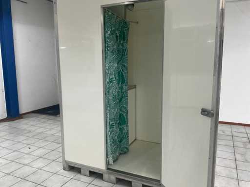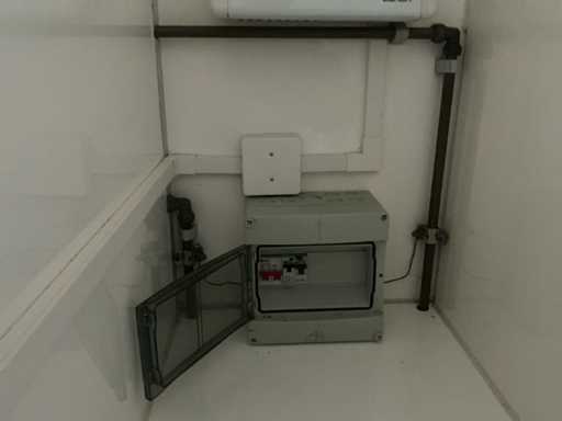 Voorzien van douchebak 70x70cm, douchekraan met douche, verlichting en extra stroompunt, Eurom verwarming en boiler.