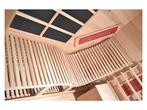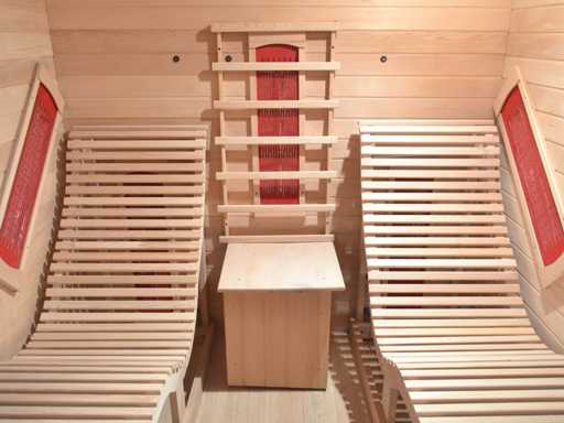 Type: RELAX 2 Model: Infraroodkachel - rechthoekig Afmeting: 1800x1800x1900mm Verwarming: Infraroodverwarming (3400w) verwarmd Giethars platen die evenredig warmte afgeven binnen de sauna Voorzien van: Helder veiligheidsglas (8mm) - Ozone desinfectie - Control Panel met USB aansluiting en Bluetooth - Leeslampje - Sfeerverlichting