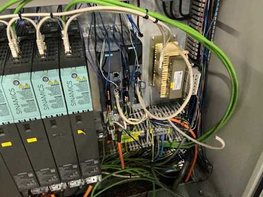 inhoud bestaande uit Siemens Sinamics servodrives, zekeringsautomaten, relais, contactor,,….