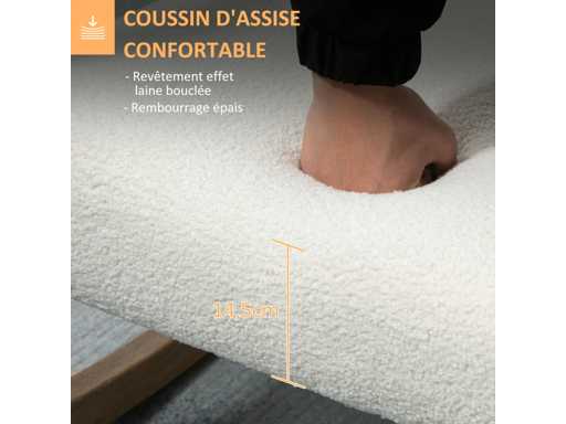 - Belangrijkste materialen: rubberhout, bekleding met krullend woleffect (100% polyester)