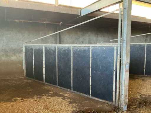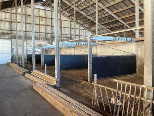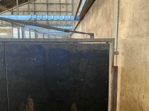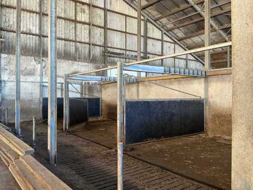 Bestaat uit: 12 stuks, stalen draaipoorten, uitgevoerd in zware agrarische kwaliteit, afmetingen per poort: breedte: 4.800 mm, hoogte: 1.650 mm, hoogte buisconstructie: 2.500 mm, scharnieren: 4 per poort, scharnierstift: Ø ca. 100 mm, lengte: 2.500 mm, bevestigd met 10 bouten per scharnieropstelling,