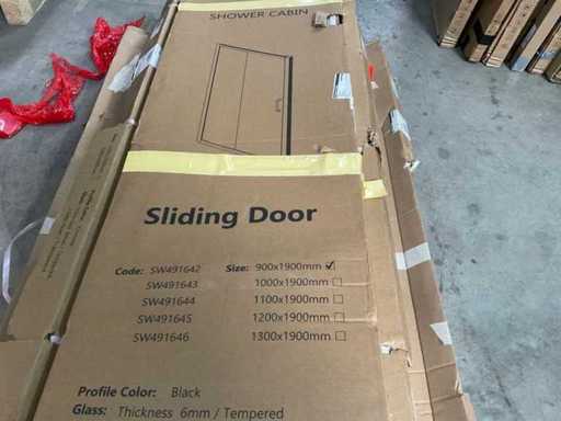Schuifdeur 90x190cm veiligheidsglas alu profiel anti kalk mat zwart