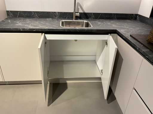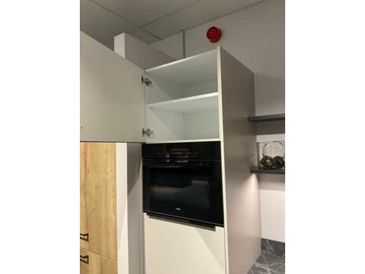 Indeling: 2 onderkasten; 1 hoekkast; 1 ladekast met binnenlade en bestekinzet; 1 hoge kast; 2 wandplanken waarvan 1 met ledverlichting en touchdimmer afm. 215x18 cm; Apparatuur: Pelgrim 4-zone inbouw inductie kookplaat; type IK0084; Pelgrim wandafzuigkap; type BSK962 mat; 90 cm breed; Pelgrim inbouw oven met magnetron; type OM240GLS; inhoud 50 liter; Pelgrim inbouw koelkast; typ PKS2102; inhoud 160 liter; Pelgrim inbouw vaatwasser; type GVW201L; 13 couverts; zonder het kozijn; Scan de QR code voor meer informatie; LET OP: door koper zelf ter plaatse nog te demonteren; zonder de getoonde accessoires