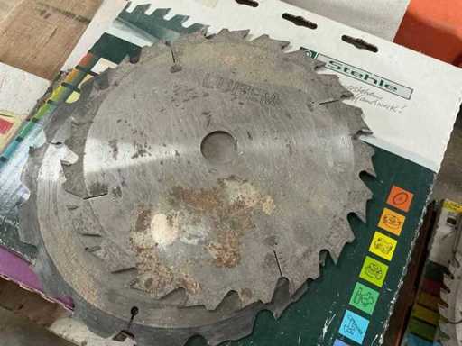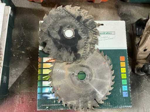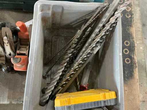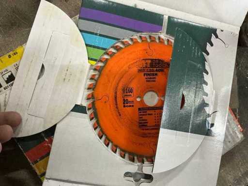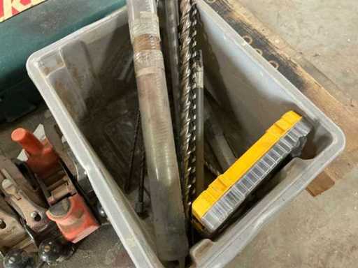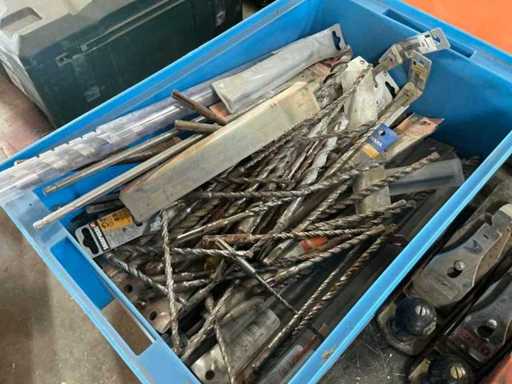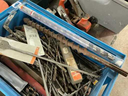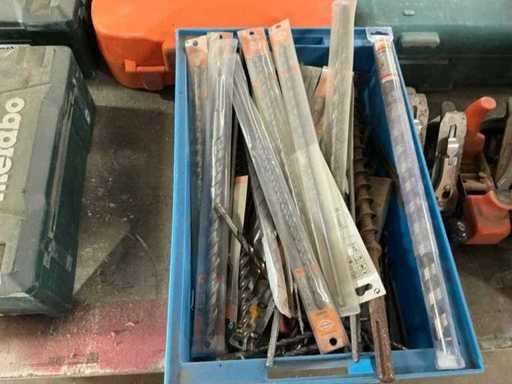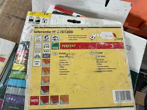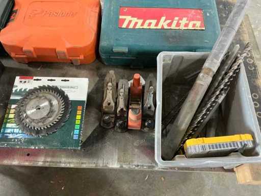 Waaronder 16 diverse zaagbladen waaronder CMT, Leitz, AKE, Makita, Stehle waaronder dia: 12cm tot 30cm, waaronder voor hout en circa. Partij SDS ( enige SDS max) boren tot dia 40mm en diverse houtboren van dia 10mm tot max 320mm, compleet met 4 diverse handschaven
