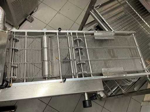 Deze machine wordt gebruikt in combinatie met een tempereermachine voor het omhullen (enroberen) van pralines, koekjes en andere producten met chocolade. Professionele Selmi R200 enrobeerband (±120-140 cm lengte, 20 cm werkbreedte), geschikt voor aansluiting op Selmi tempereermachines. Compact formaat, volledig RVS uitgevoerd, ideaal voor pralines, koekjes en klein banket.”