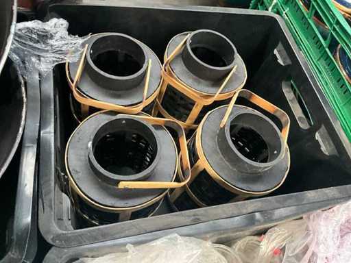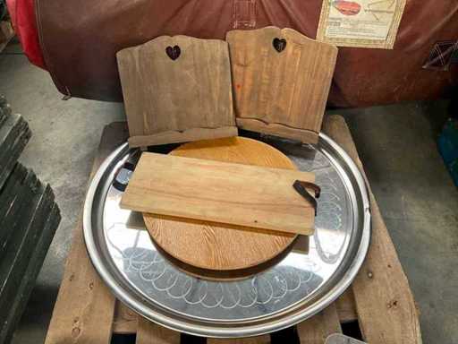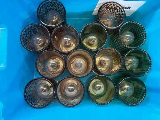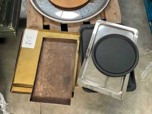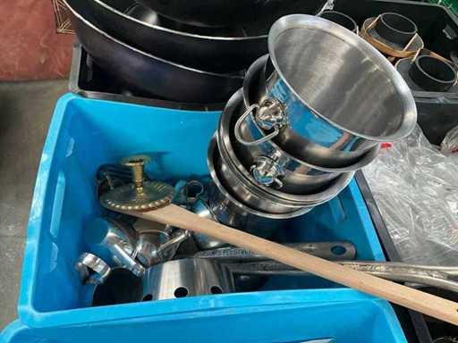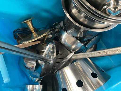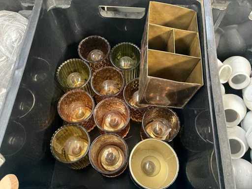 Waaronder diverse dienbladen, bakplaten, rieten mandjes, suikertangen, koffietassen, porseleinen vaasjes, diverse ijs- en champagne emmers, Led tafellampjes, glazen kommetjes etc