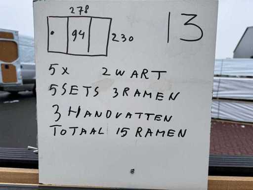 • Totaal: 15 ramen (5 sets van 3 stuks)