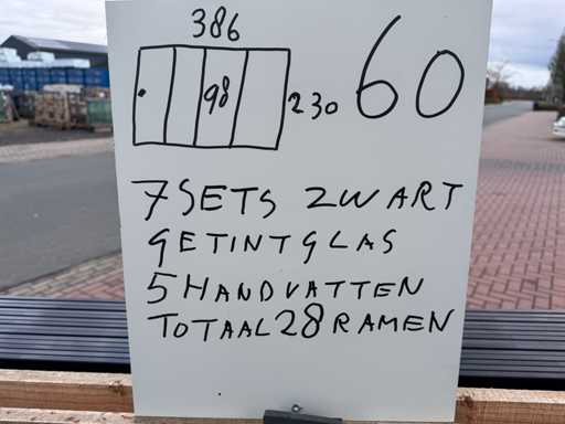 7 sets van 4 schuiframen – 98cm x 230 cm, getint glas